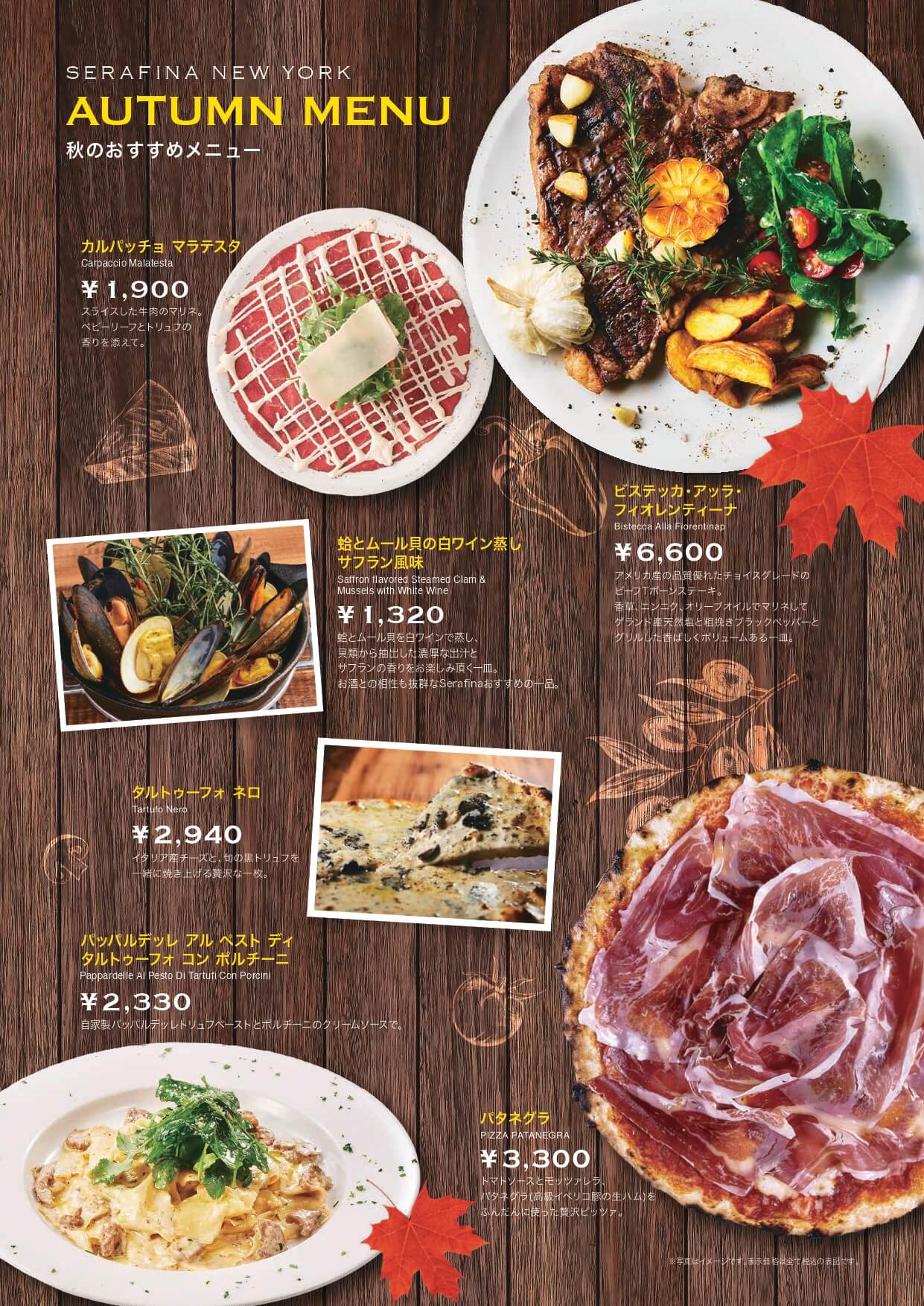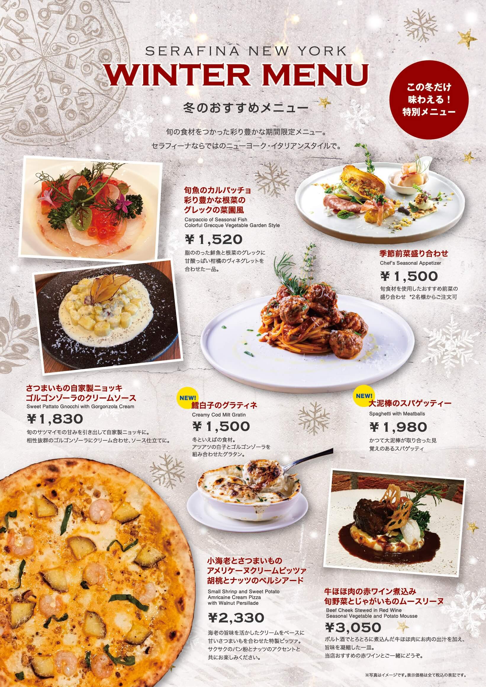 セラフィーナならではの ニューヨーク・イタリアンスタイルでお楽しみください!